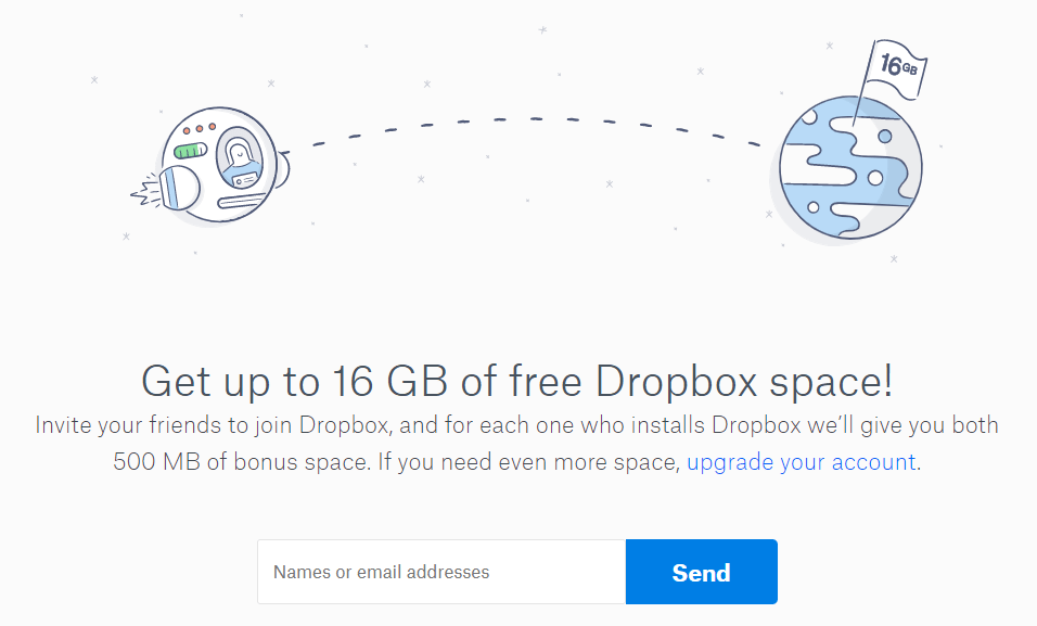 The second method to obtain Dropbox free space is to invite friends to use Dropbox. Who doesn’t like free storage? Invite your friends to Dropbox and if they start using It, Dropbox will provide both you and your friend with 500 MB of additional storage.